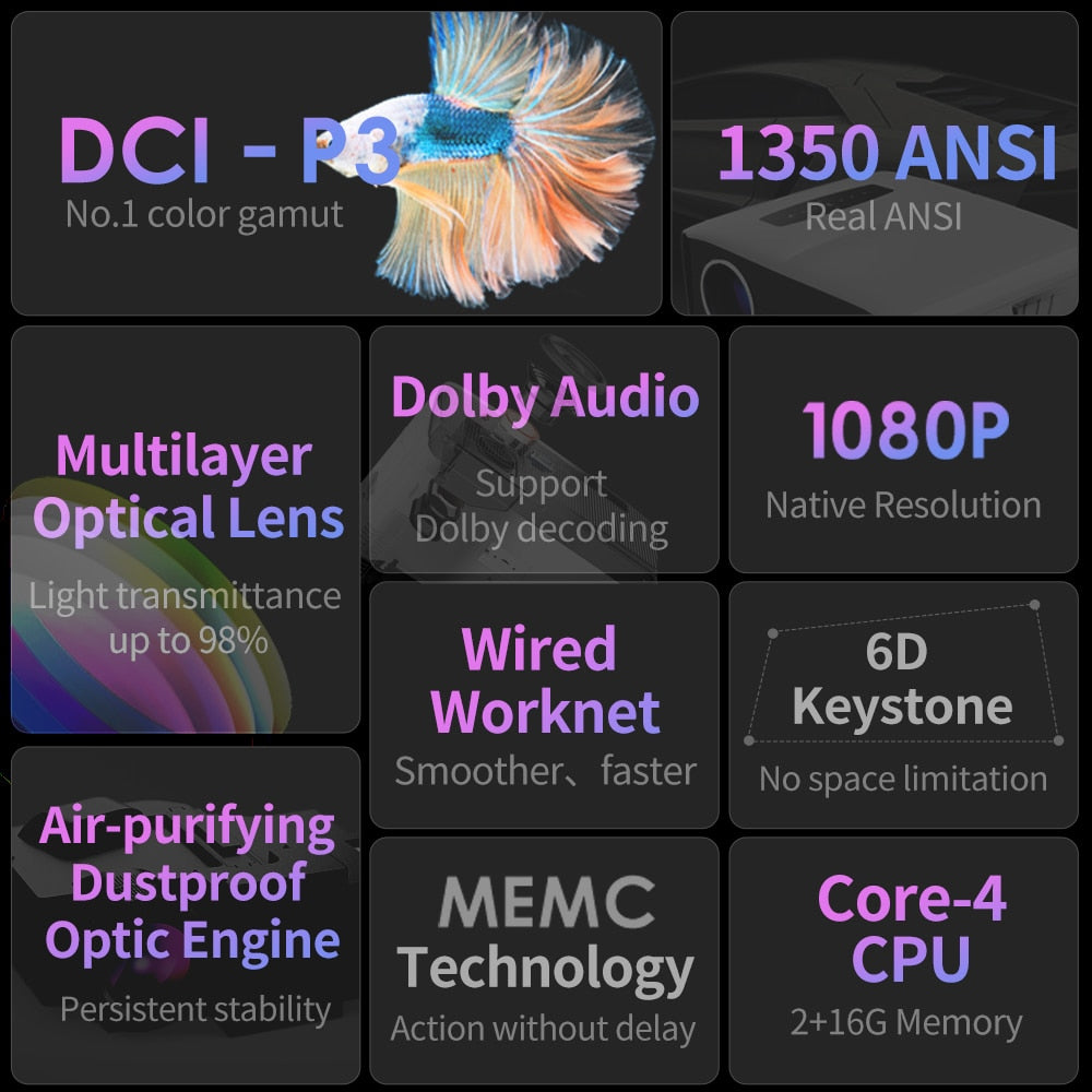 - Looking for a high-quality projector for your home theater or business or school? The EUG A15+ projector is perfect for you! With its 1350 ANSI lumens and native resolution of 1920x1080p, you can enjoy a clear and detailed image, even in daylight.