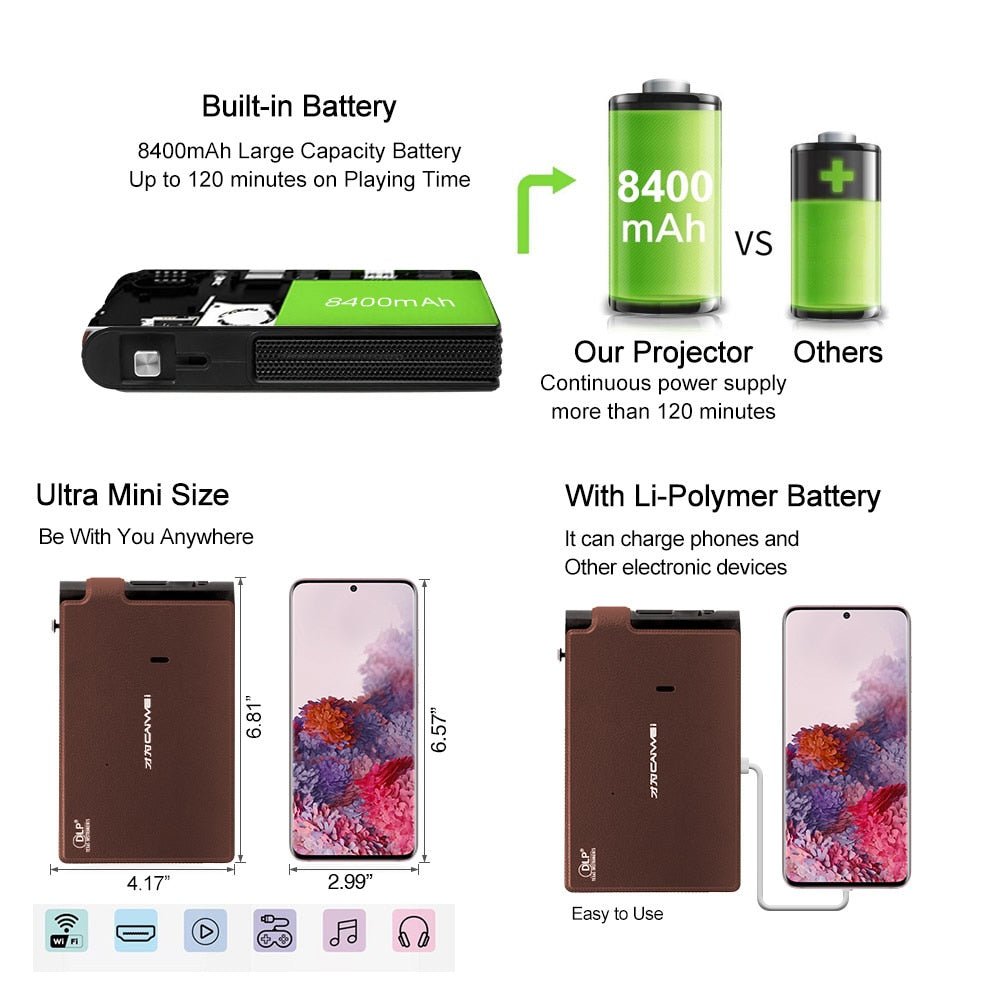 - The projector is so portable and thin,you can take it to everywhere.DLP imaging technology breaks traditional restrictions, has higher contrast and smaller volume