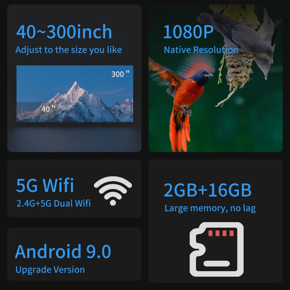 Home Theater Projector Mini / portable LED and 5G WIFI Full HD 1920*1080P 4D/3D